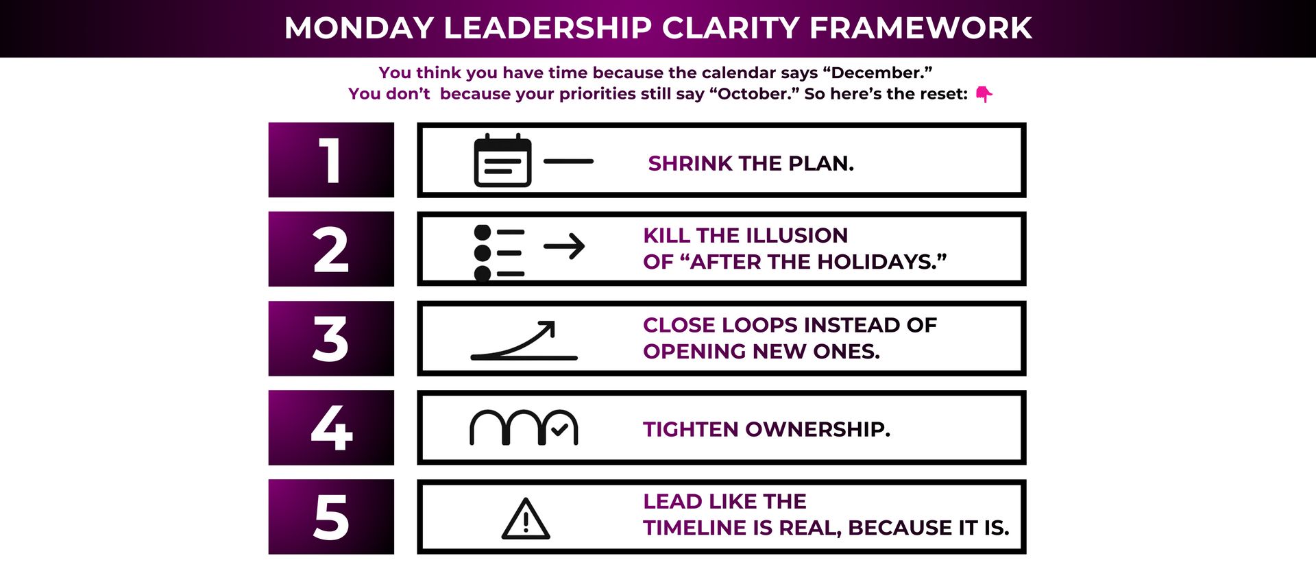 Assume January will be chaos, not clarity → If you don’t build momentum now, the first quarter will be about catching up instead of growing.