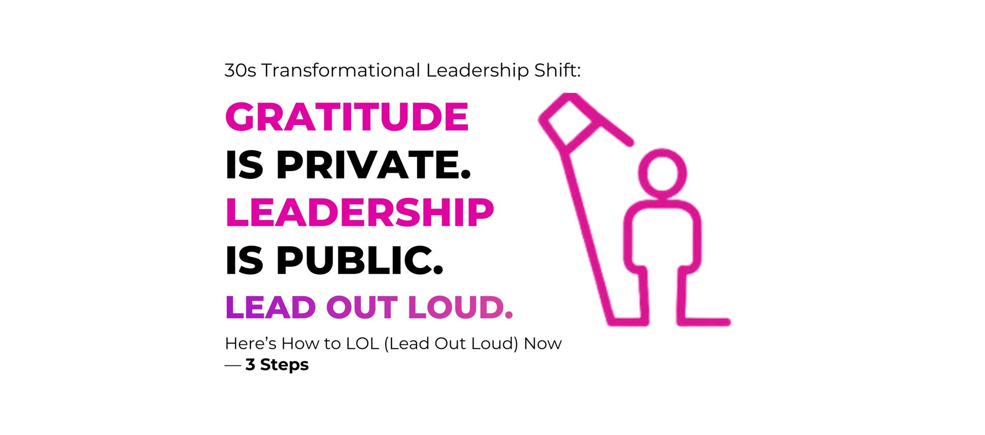 - The Leadership Shift No One Talks About: Gratitude Is Private — Leadership Is Public. Lead Out Loud.”