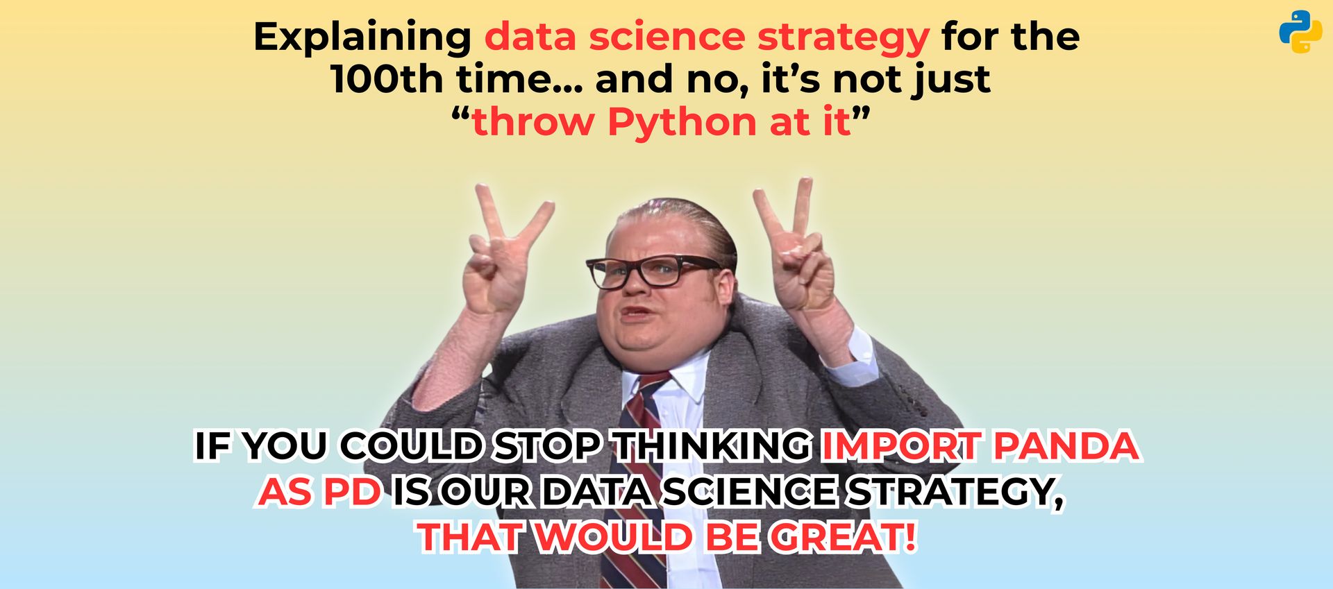 “Import pandas as pd” might kick off a script. It might even spin up a shiny dashboard. But let’s be clear: that isn’t a data science strategy.